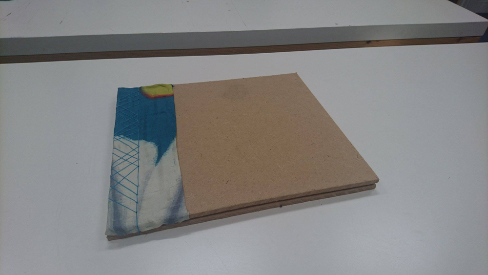 I finally got my hands on some MDF board to try and make a mock-up of the cover with fabric wrap and the binding.